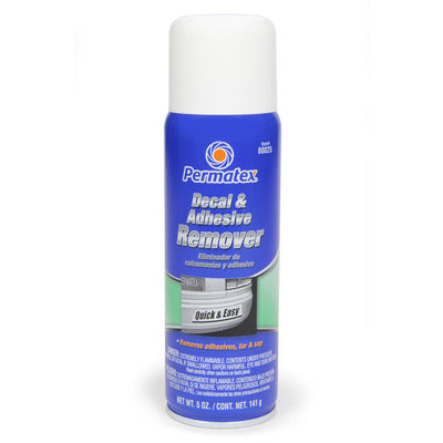 Permatex Decal & Adhesive Remover is a fast-acting formula that quickly removes adhesive residue, decals, bumper and window stickers, tape, tar, sap, bugs, grease and other sticky substances. This versatile adhesive remover contains no acetone and is safe for use on virtually any surface including windows, auto body paint, bumpers, vinyl, leather, fabric, metal, plastic, and wood.