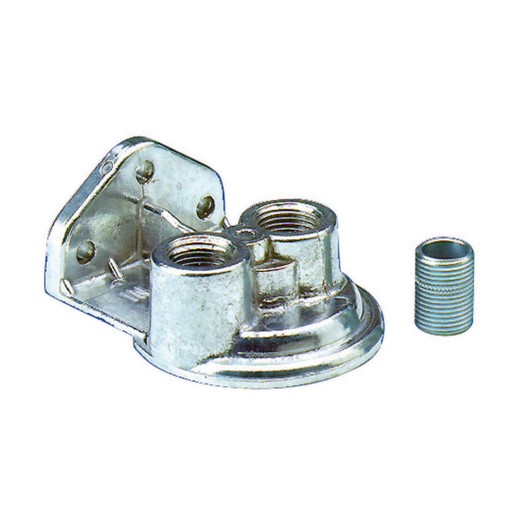 Remote Oil Filter Mount - Single Filter - 3/4-16 in Thread - Two 1/2 in NPT Ports - Bolt-On - Upward Facing Ports - Aluminum - Natural - Sold as Each - Brand: Perma-Cool - Part Number: 1211