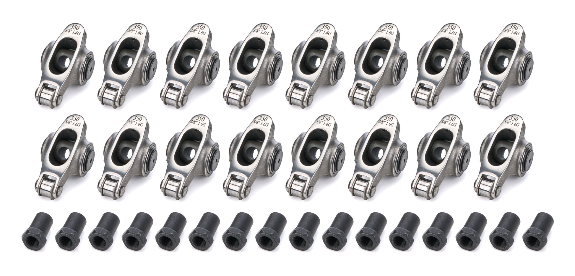 Rocker Arm, Pro Series Billet, 3/8 in Stud Mount, 1.60 Ratio, Full Roller, Aluminum, Clear Anodized, Small Block Chevy, Set of 16 - Brand: PRW Industries Inc - Part Number: 6535021