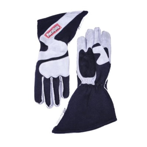 The RaceQuip 359 Series double layer outseam gloves are constructed with two layers of knit Nomex® and exceeds the SFI 3.3/5 rating. The outseam or reverse seam as they are sometimes called have the seam on the outside for improved comfort and better feel on the wheel. These are the same style of glove that you typically see worn in the top levels like NASCAR, Indy Car, IMSA and others. The palms are a high grip, supple suede leather which also improves comfort and feel. An extra long cuffed gauntlet provides extra fire protection. Mitered fingers offer a more precise fit again increasing comfort and feel.