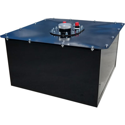 RCI fuel cells feature a number of important benefits, like seamless polyethylene construction for outstanding impact resistance and 360 degree mounting strap recesses. What differentiates these Circle Track cells from their drag race counterparts is the pickup hose in the right rear corner for increased fuel pickup during cornering, also a flat bottom for easier mounting, and a cap. This Circle Track fuel cell has a black powder-coated steel safety can for increased crash protection.