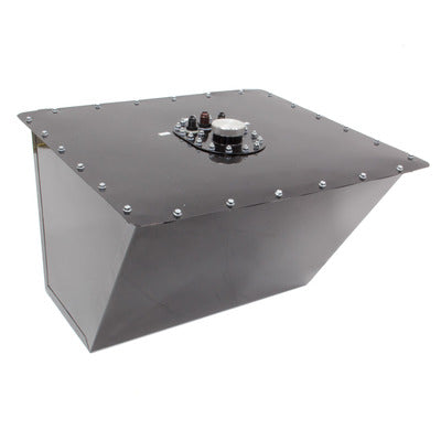 Race-proven fuel cells use a special wedge design to help optimize weight transfer and traction. Cells fit all circle track, dirt or asphalt chassis, and combine powder-coated steel containers with cross-linked, high-strength polyethylene bladders. Each cell includes a safety flapper, -8AN male rollover vent, -8AN male fuel return, and -10AN male pickup designed to pickup fuel from the right rear corner.