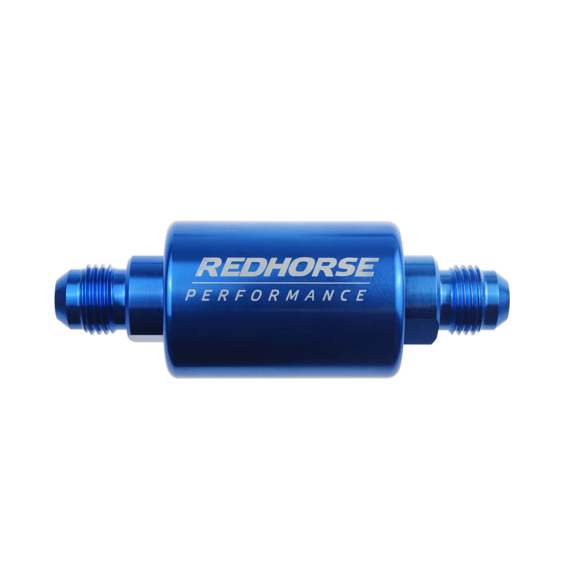 Fuel Filter - 4151 Series - In-Line - 100 Micron - Stainless Element - 8 AN Male Inlet - 8 AN Male Outlet - Aluminum - Colors: Blue Anodized and Black Anodized - Sold as Each - Part Number: 4151-08-01