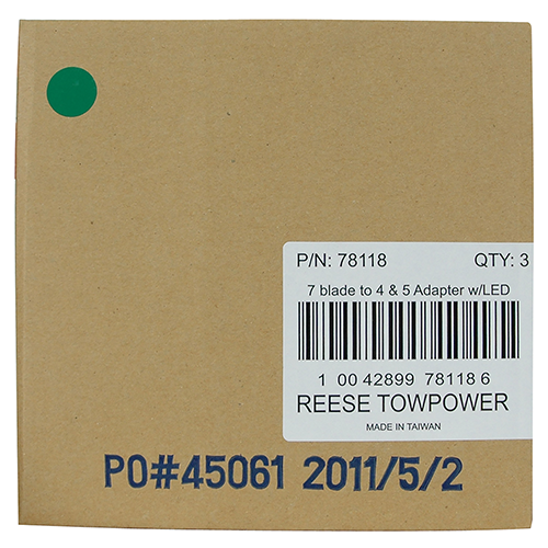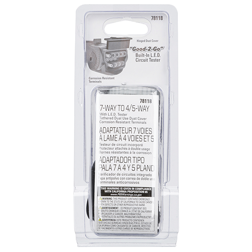 This REESE Towpower towing adapter converts a 7- way blade connector to a standard 4 or 5-way flat connector. It features highly visible, cool blue LED circuit tester for instant completed circuit confirmation. Not only can you adapt the trailer to vehicle fast, but you can be certain the connections are correct.