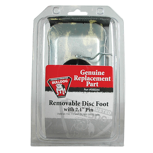 Bulldog removable disc foot with pin is designed to provide excellent ground support which prevents unwanted movement of various types of trailers. It is also a genuine BULLDOG replacement part. Using genuine Bulldog replacement parts is the best way to maintain the integrity of any Bulldog product as it is manufactured by the most trusted name in the industry.