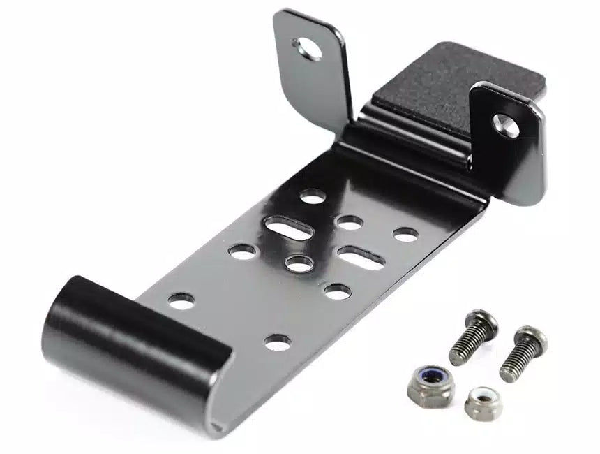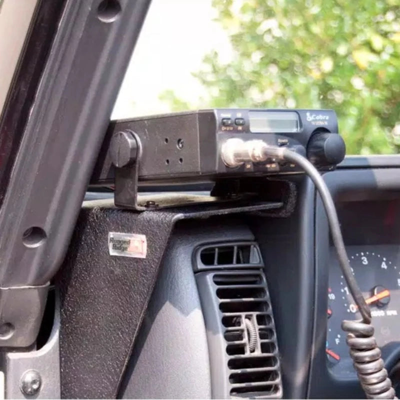A CB Radio is one of the most useful tools to have when navigating the backwoods trail, far from cellphone coverage. Unfortunately, banging your knee on a dash mounted CB will have you rethinking your decision. Rugged Ridge developed this CB mount with real-world ergonomics in mind, positioning the radio unit directly above the rearview mirror for ease of access and visibility. No longer will you be reaching across the cab to change the channels or locate a stray microphone. This CB mount bracket installs easily and has a universal mounting pattern to work with most manufacturers hanging brackets. No drilling or modifications required on most applications.
