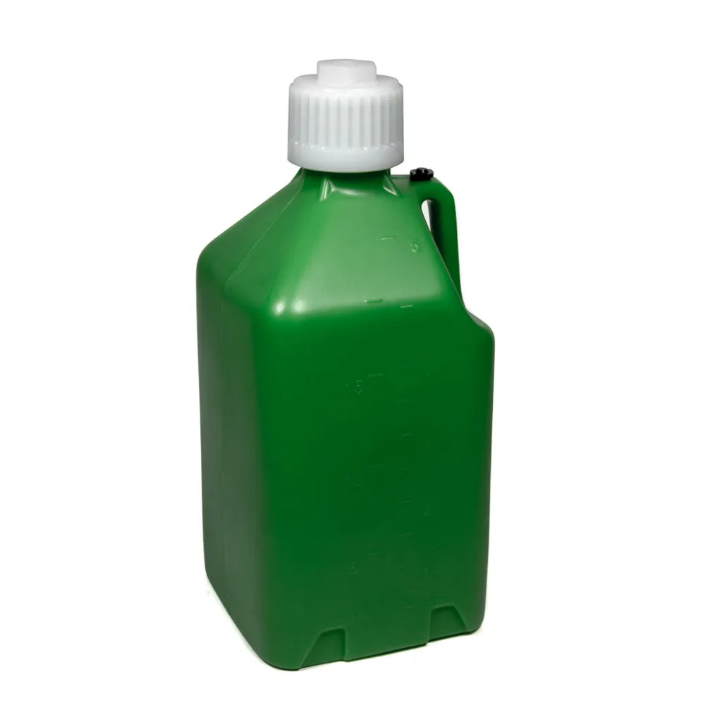 These square 5-gallon utility jugs eliminate wasted space. Due to their square shape, they fit flush against upright surfaces. The molded handle bleeds air into the jug for quick pouring. Plus it is positioned for balance and control.