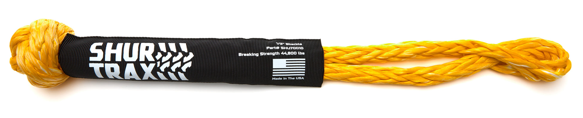 ShurTrax soft shackles provide an easy and secure way to connect a recovery rope to a vehicle, and are designed to help prevent damage and wear to recovery ropes. Made from a tough, stretch-resistant ½” diameter UHMW-PE (ultra-high molecular weight polyethylene) rope and covered with a special abrasion-resistant sleeve, soft shackles can handle loads up to 11,200 lbs. and have a breaking strength of 44,800 lbs.