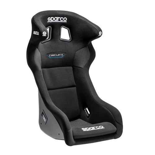 The Sparco Circuit II QRT is a wider version of the Circuit which is an ultra-light competition seat specifically designed for circuit use. Made from aramadic fiber-reinforced fiberglass with all-new QRT Technology, the Circuit II QRT features a wider shell to accommodate a larger driver. The Circuit II LF includes integrated head bolsters to protect the head and deep side bolster for maximum lateral containment. This seat can be used with a Hans device for even greater protection. The ultra-light shell is then wrapped in an impact-absorbing and fire retardant fabric that helps hold the body. The Circuit II QRT is FIA approved.