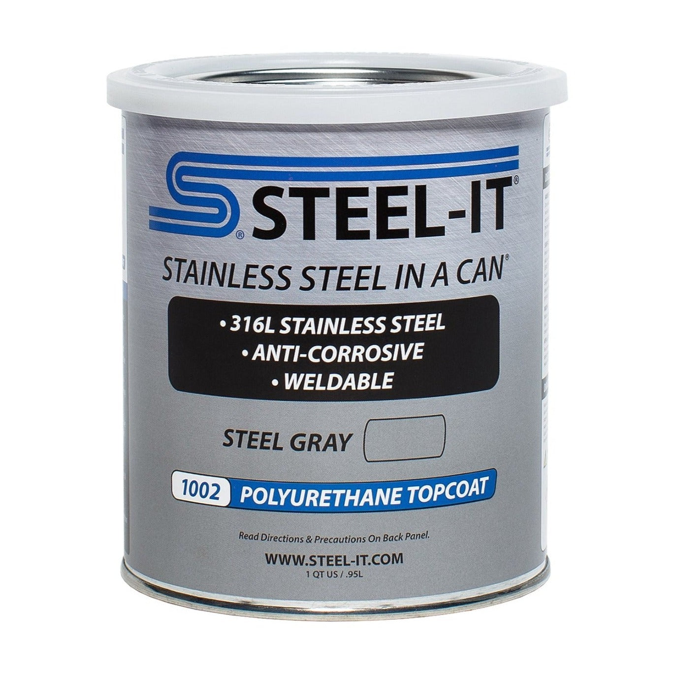 Paint - Stainless Steel in a Can - Polyurethane - Weldable - Non-Corrosive - Steel Gray - 1 qt Can - Sold as Each - Brand: Steel-It - Part Number: STL1002Q