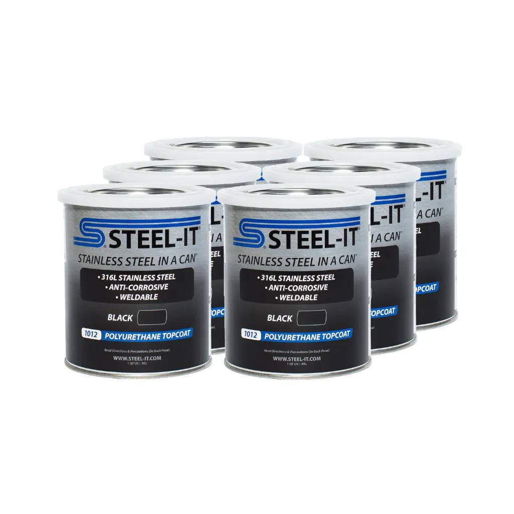 Paint - Stainless Steel in a Can - Polyurethane - Weldable - Non-Corrosive - Black - 1 qt Can - Set of 6 - Brand: Steel-It - Part Number: CASE1012Q