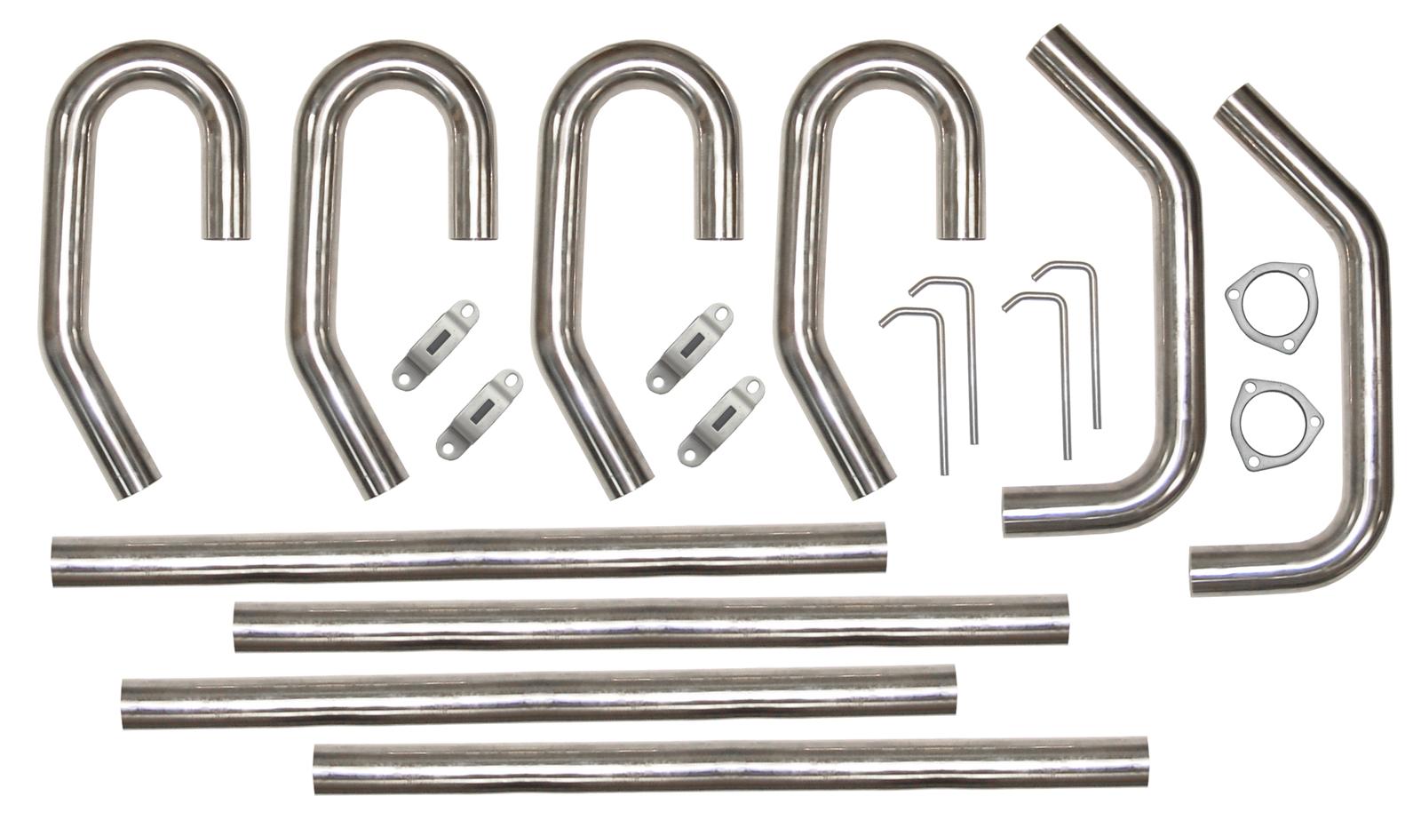 | Notes | Includes (4) 30/180 degree and (2) 45/90 degree bends, (4) 4 foot straight pipes, (2) 3 in. collector flanges and hardware. Due to variations in different manufacturers headers, modifications to the length and or angles of the intermediate pipes may be required. |