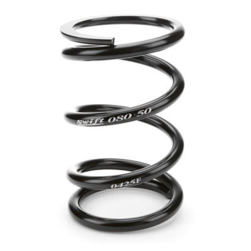 Coil Spring - Conventional - 5 in OD - 8 in Length - 425 lb/in Spring Rate - Front - Steel - Black Powder Coat - Sold as Each - Brand: Swift Springs - Part Number: 080-500-425F
