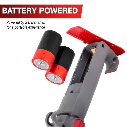 - Battery Powered by two (2) D batteries (not included)