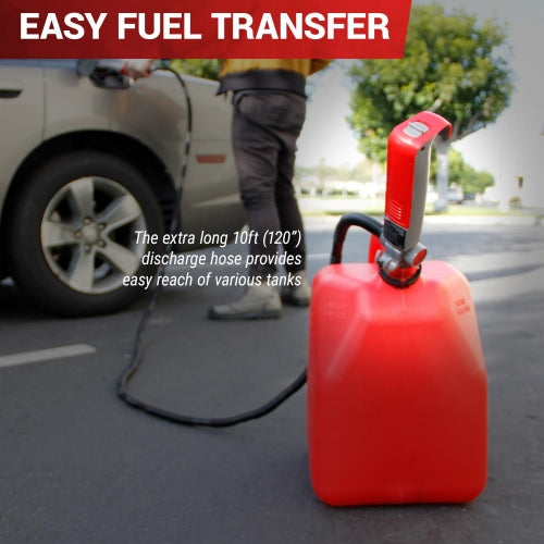 Tera Pump electric transfer pumps feature a 15-20 in. telescopic intake tube to fit gas cans, racing/utility jugs, and small drums. They also include an XL extended 10 ft. discharge hose. These fluid transfer pumps are ideal for these liquids: gasoline, diesel, DEF, agricultural chemicals, kerosene, antifreeze, windshield washer fluid, and mild detergents. Powered by two "D" batteries (not included) the electric pumps also have a quick-stop manual safety nozzle.