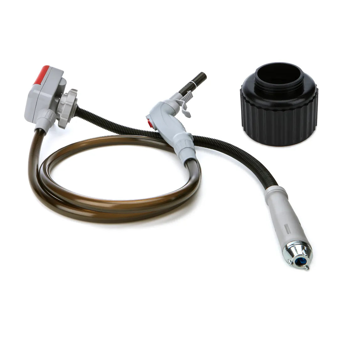 - Universal Gas Can, 2.3 Gallons/Minute, 54" Discharge Hose, Auto Stop Nozzle, (4) AA-Batteries
