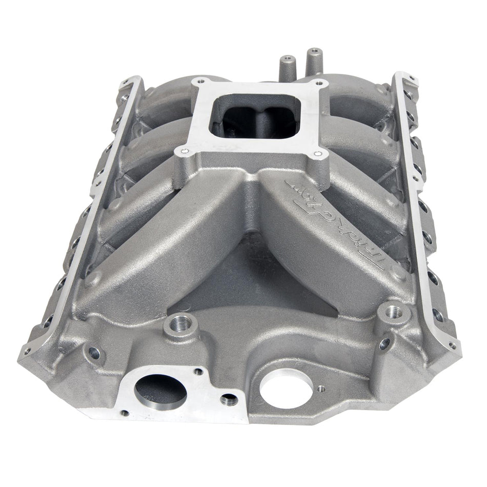 This single-plane, 4150-flanged manifold utilizes a high-rise design, resulting in increased air flow and horsepower. Cast from A319 aluminum, manifolds include integrated bosses for nitrous or fuel injection.