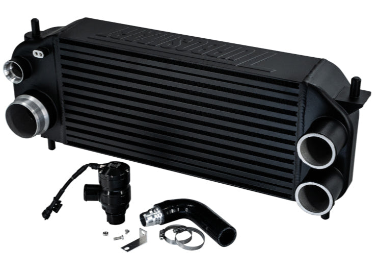 Intercooler - Horizontal Flow - 19.5 x 9.5 x 4.5 in Tall Core - 2.75 in Inlets - 3 in Outlet - Recirculating Blow Off Valve - Aluminum - Black Powder Coat - Sold as Each - Brand: Turbosmart - Part Number: TS-PK-1002