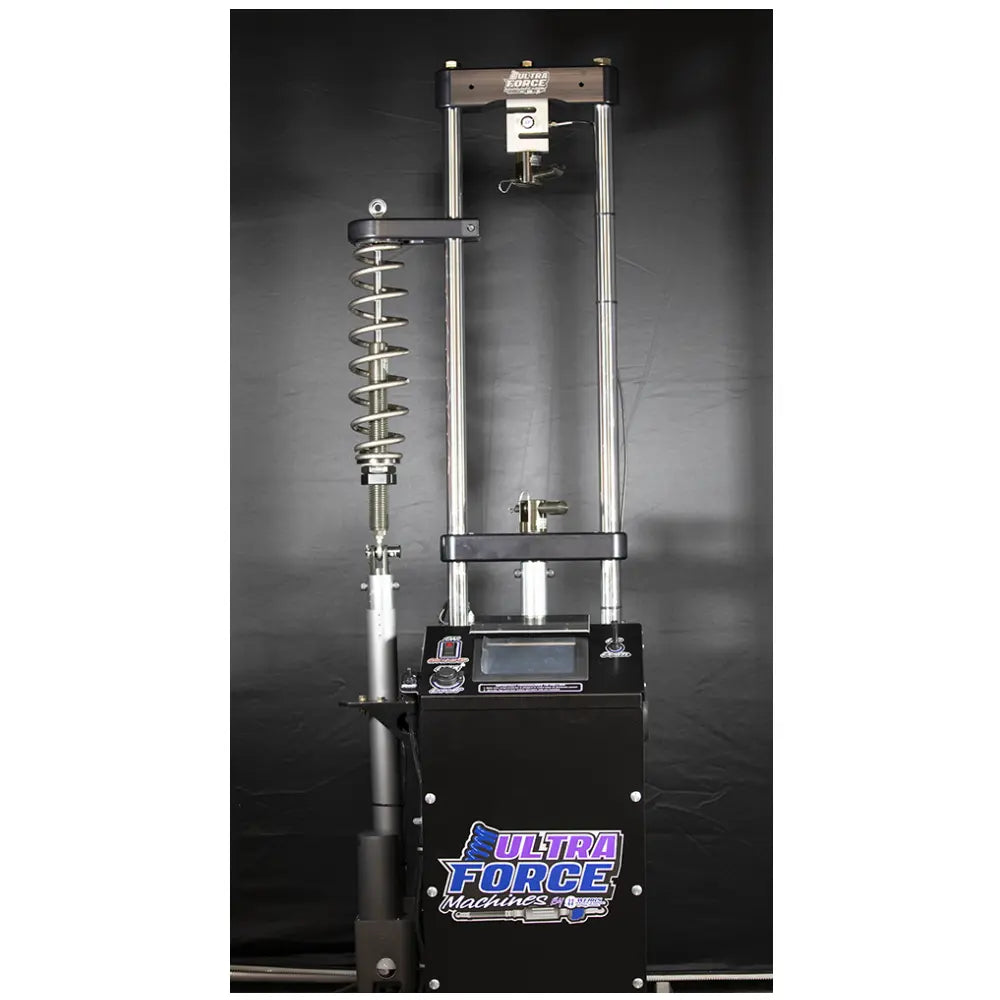 Jason Sivils inspired Ultra Force load rating machines are built with CNC machined components giving the machines unsurpassed strength and quality. Manual machines feature an Automatic Move to Start function to speed up your process. The setup page also allows you to store your center-to-center measurement for your 4 corners and a pull bar/lift arm measurement. The machine has the ability to smash a spring/bump stop setup to 4500# and pull a pull bar up to 3000# capacity with electric motor motion. The quick adjust wrap-around spring removal arm makes easy work out of unloading spring packages, by not relying on coil spacing, but using special spring removal cups. This model includes a side unloader attachment which allows you to load springs that are too tall to fit inside the main frame.